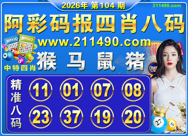 104期:【阿彩码报】 💎四肖八码💎【猴马鼠猪】开:马01准